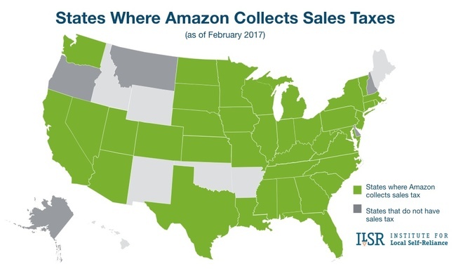 由于这些新法律,州协议以及亚马逊新设施的建立,该公司现在对美国大部分地区征税。
